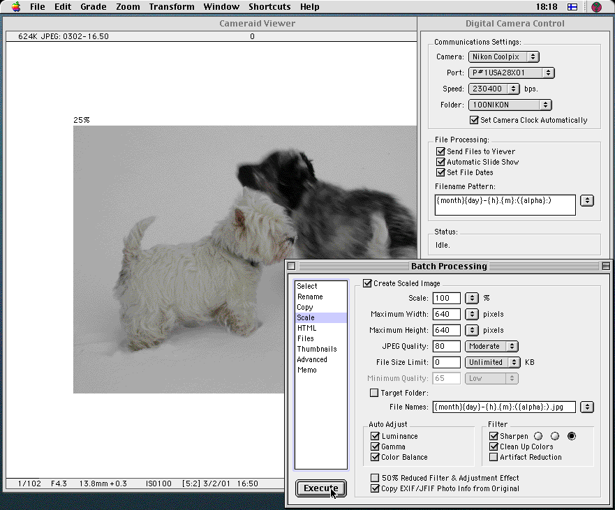 The unregistered shareware version is fully functional, but includes built-in delays and registration reminders in some operations. The $15 registration fee (payable through Kagi) will eliminate the delays and make working with Cameraid faster and smoother.